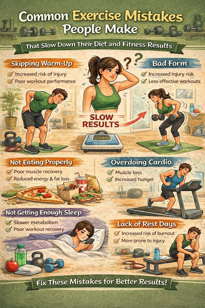 Most of the time, the problem is not lack of effort, but common exercise mistakes that silently slow progress. Exercise should support your diet and fitness journey, not make it harder.