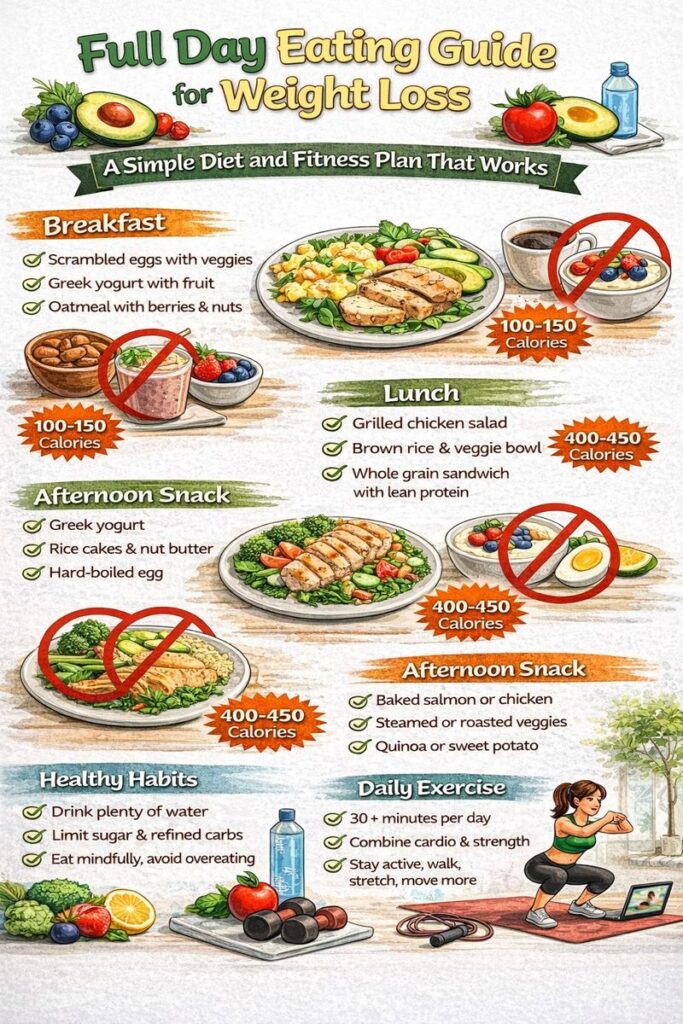 The truth is, weight loss becomes easier when your diet and fitness routine is balanced, realistic, and sustainable. A full-day eating guide helps you understand what to eat, when to eat, and how to fuel your body properly without feeling deprived.